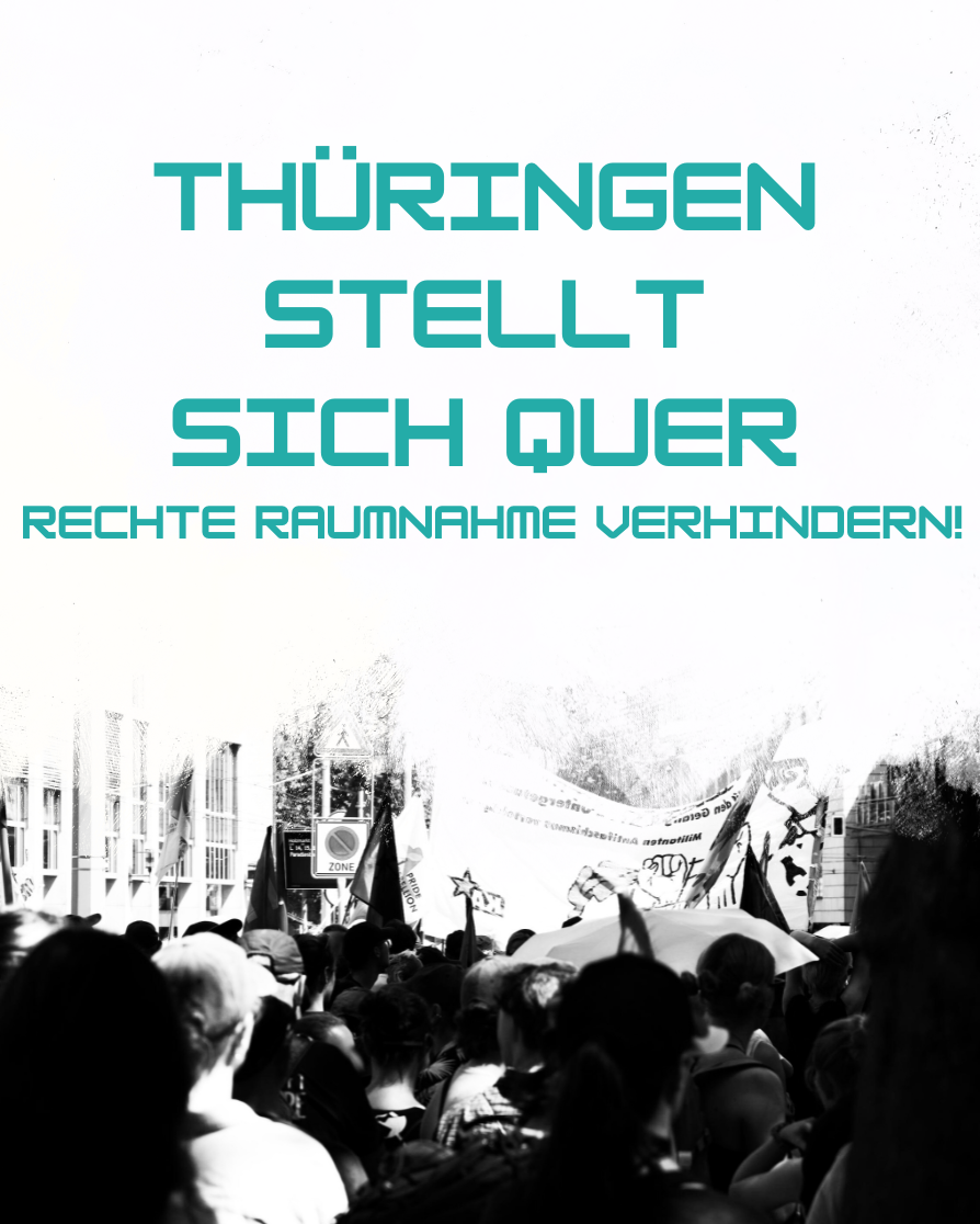 Weil all dies natürlich nicht unbeantwortet bleiben kann, gibt es solidarische (Gegen-)Veranstaltungen in Erfurt, Gera, Altenburg und Weimar.