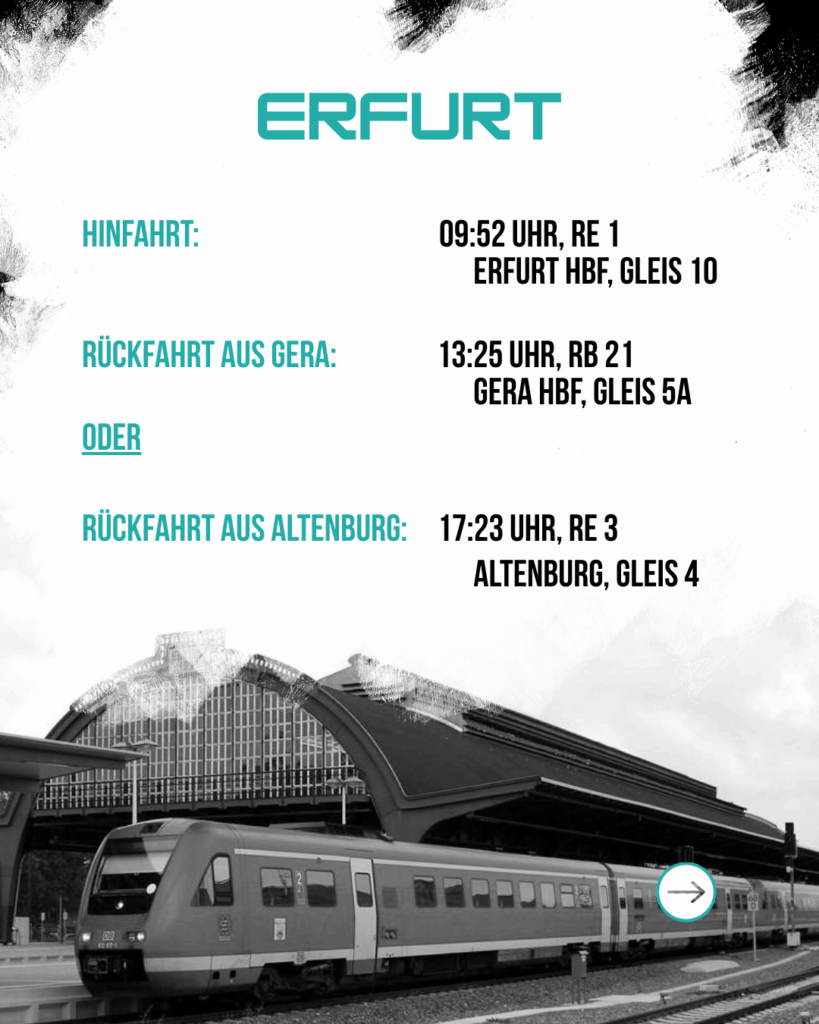 Für alle Jenenser*innen: Ihr könnt auch mit dem Solibus nach Gera fahren – er startet in Jena auf dem Grießparkplatz und bringt euch direkt zum Hofwiesenparkplatz in Gera.