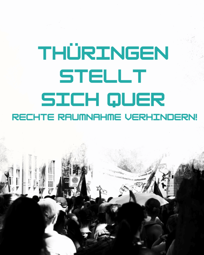 und Reichsbürgerinnen bis hin zu AfD und Ex-NPD ist alles dabei. „Diese Welle rechter Mobilisierung ist kein Zufall. Sie zeigt, wie konstant die extrem rechte Szene in Thüringen vernetzt ist, wie gezielt sie Städte unter Druck setzt und wie sehr sie auf Provokation, Einschüchterung und Raumnahme setzt“, erklärt eine Sprecherin. Gleichzeitig gibt es solidarische Demonstrationen und Kundgebungen, teils als Gegenprotest und teils, um eigene Botschaften in den öffentlichen Raum zu tragen.